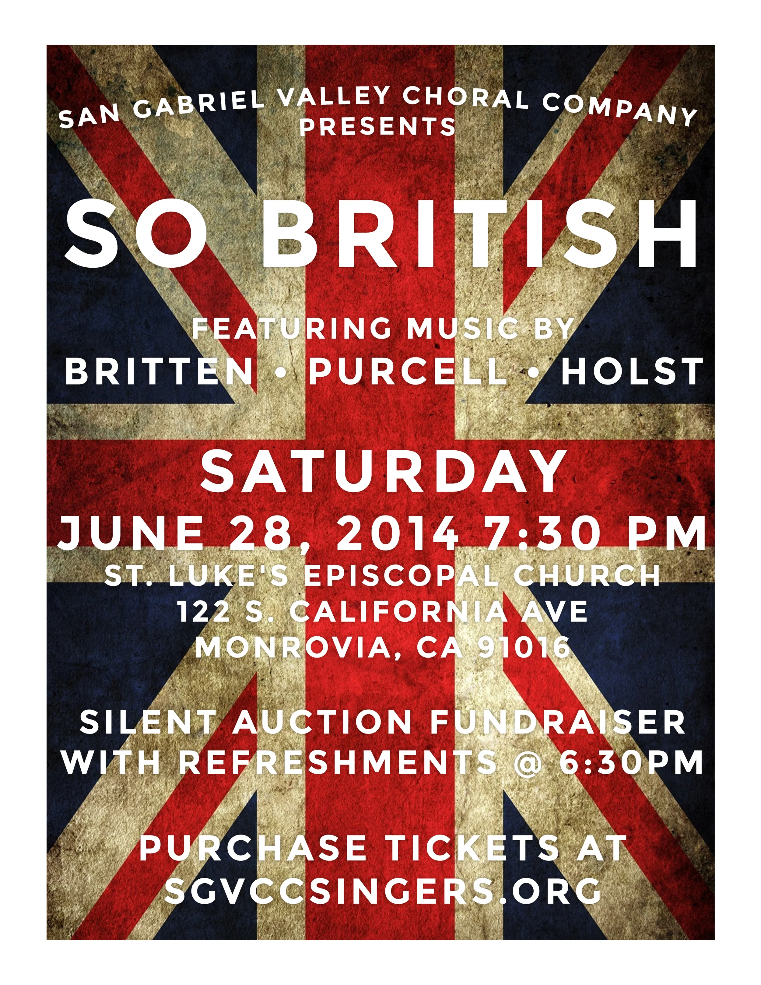 Hello, all! I wanted to let you know about a concert I’ll be singing in on June 28th at 7:30pm at St. Luke’s Episcopal Church, 122 S. California Ave in Monrovia.
